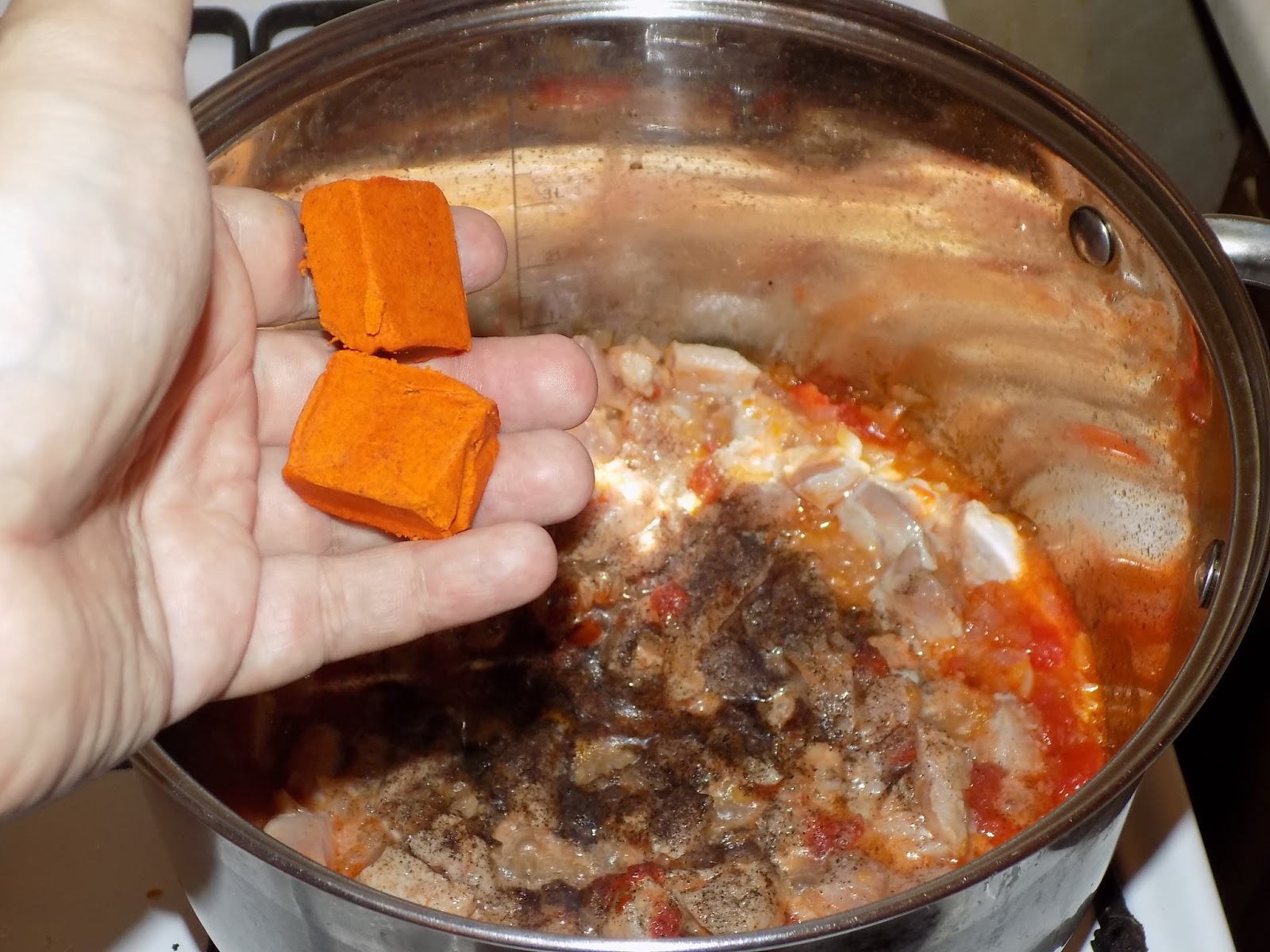 6. Néha engedek a csábításnak és becsempészek a konyhába némi újdonságot. Így most pörköltszaft kockát is adok az ételhez. Ettől teltebb, sűrűbb lesz az étel.